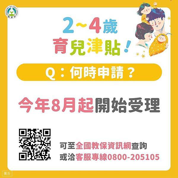 2018年八月公布未滿兩歲育兒津貼補助2500元