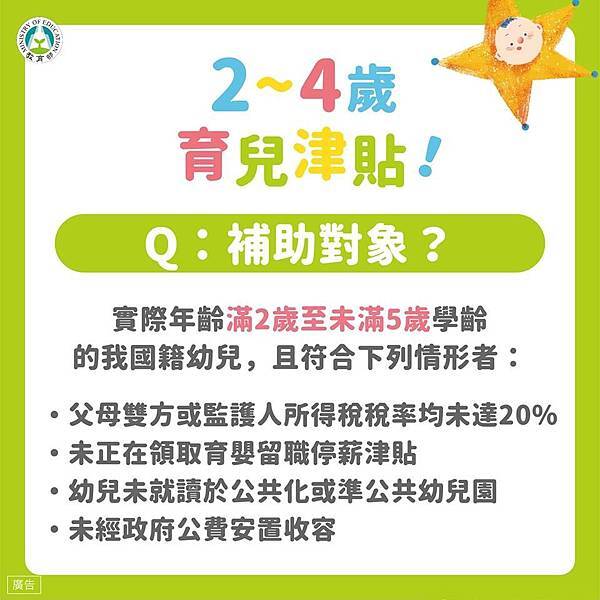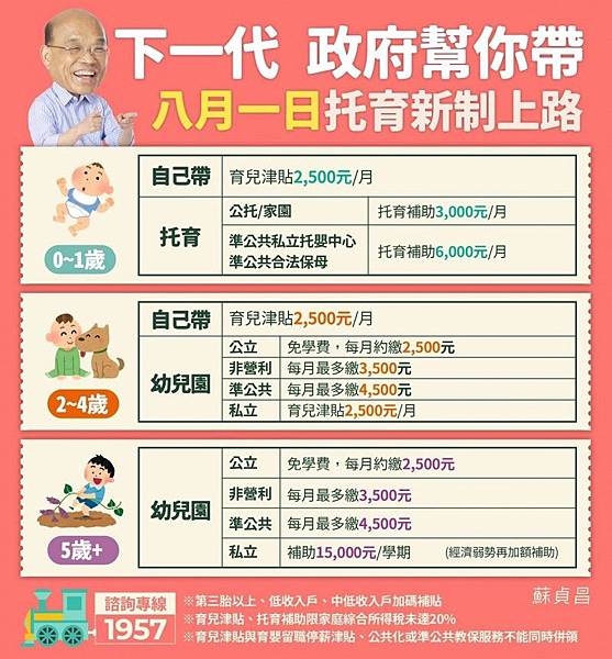 還有嬰幼兒奶粉與尿布補助:每月1,500元至2歲